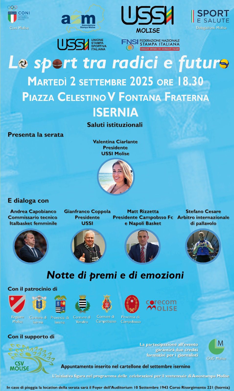 La serata sarà condotta da Valentina Ciarlante, presidente dell’USSI Molise, di